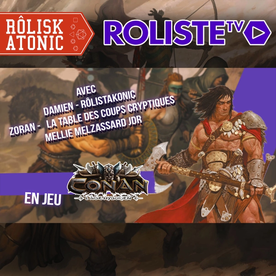 📣🖥 Demain samedi à 20h30 en diffusion "première", retrouvez sur Rôliste TV une partie filmée "let's play" du jeu de rôle du mois : CONAN de chez Monolith.