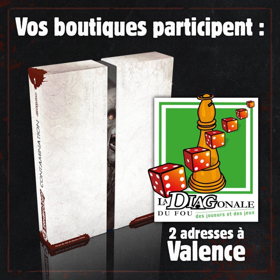 📣 Chers rôlistes Valentinois, sachez que les boutiques de la La Diagonale du Fou participent au financement participatif de #zombiology et que vous pouvez donc vous rapprocher d'eux pour obtenir votre boîte ou ouvrage !