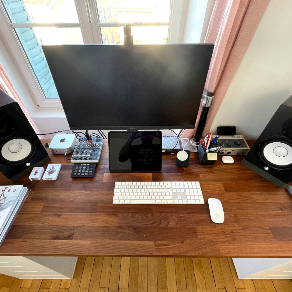 Voici mon nouveau set up de travail, qui va devoir évoluer avec des rideaux noirs, l'ajout de lumières et plus encore.