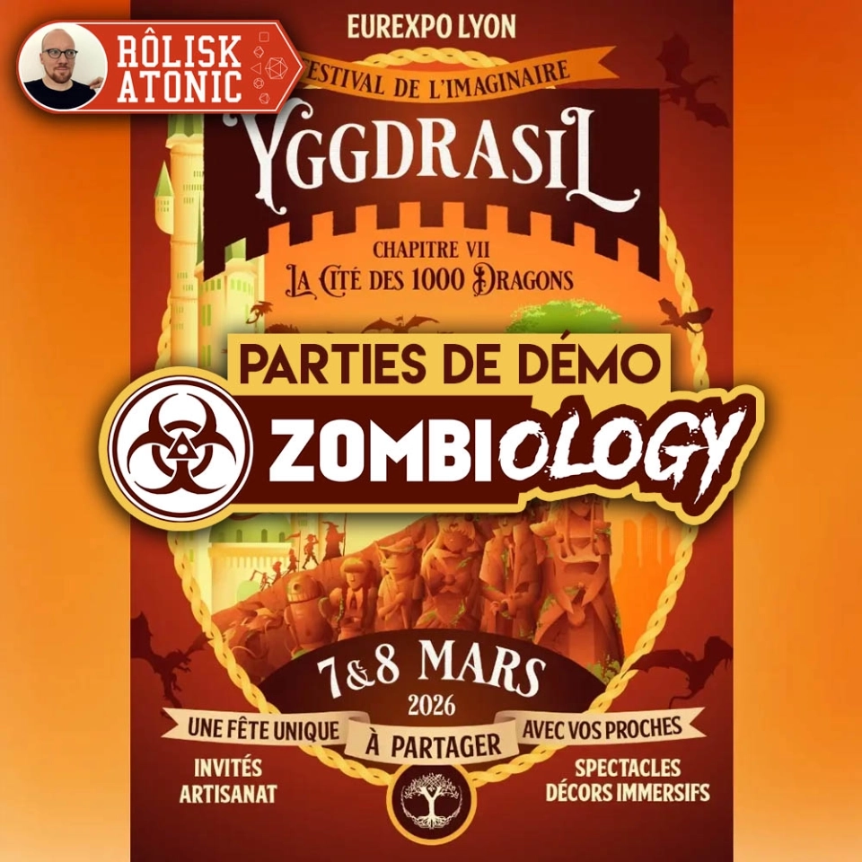 📣🎲 Ce samedi et dimanche, je serais à Eurexpo Lyon pour le Festival de l'imaginaire Festival Yggdrasil LYON pour faire découvrir Zombiology aux rôlistes de passage avec la FAJIRA et l'association Opale.