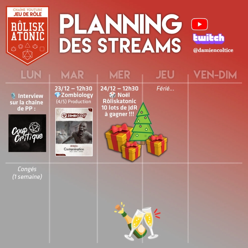 🎄🎅 mercredi 24/12, grand bilan de l'année, mes tops, et grand tirage au sort de 10 lots de jeu de rôle offerts par la chaîne et Philibert !!!!