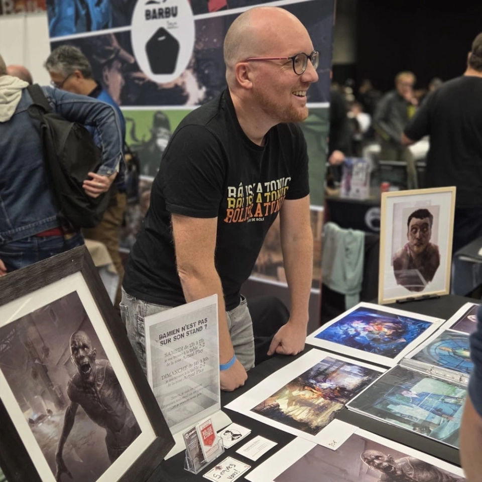 Souvenir de la Convention OctoGônes 2025 et de mon bout de stand accueilli amicalement et chaleureusement par le Studio Deadcrows de Stephan Barat et que j'ai partagé avec ma compagne Stephanie Böhm et ses magnifiques illustrations !