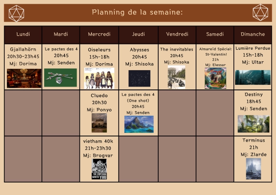 Un peu en retard mais voici le programme de la semaine sur le serveur discord Affabulations!