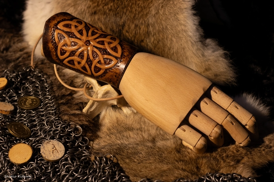 Prenez une loutre, ajoutez y un zeste de bleu, étaler le tout sur un peu de cuir et voilà une paire de brassards sur mesure.