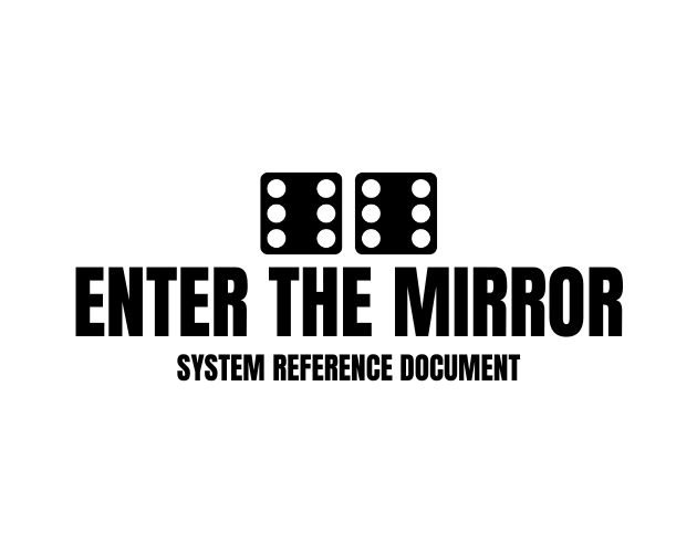 Why the name Enter the Mirror? Because everything has two sides, two faces. When you face a risky situation, prepare a pool of 2 to 5 six-sided dice. If two of them show the same face, you achieve a success, and the story moves forward positively.