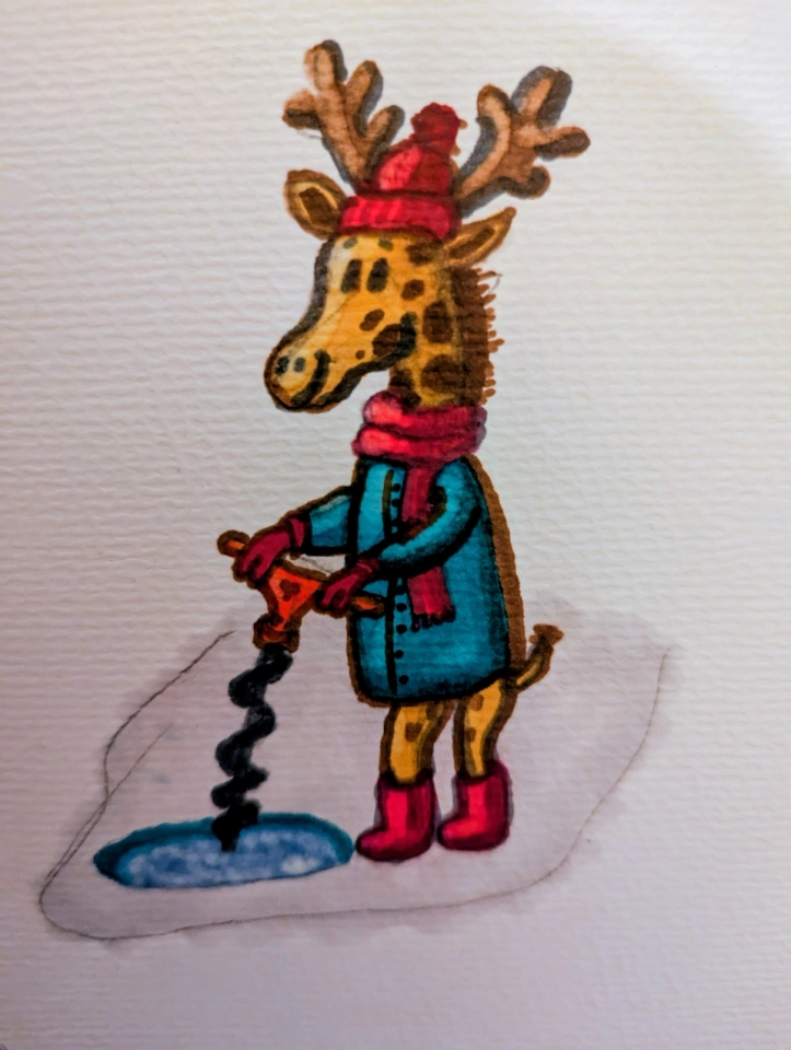 Chaque jour d'hiver, quand le monde restait bien au chaud dans sa maison, une petite girafe enfilait son manteau bleu, son bonnet à pompon ornée de bois de cerf et ses bottes rouges avant de "vivre des aventures". Elle n’était pas très grande, pas très rapide, mais elle avait un grand cœur et emplissait la ville de petit trésor pour qui savait voir avec des yeux d'enfant.